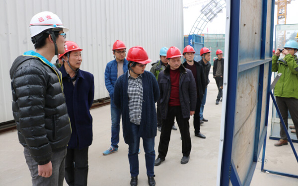 在九圩港二线船闸土建工程施工现场,调研组一行首先查看了项目部驻地、“三场”、施工便道及工地试验室等临建设施标准化建设情况。随后,针对工艺标准化的控制,着重查看了现场钢筋加工质量、模板加工与拼装质量、闸室墙混凝土浇筑质量,详细询问了施工过程中质量通病防治措施。调研组还对现场钢筋阻锈剂、蒸汽发生器、钢管调直机、混凝土凿毛机等“五小四新”技术的应用进行了详细了解。