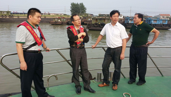 2015年9月23日下午,江苏省交通运输厅航道局养护科蔡远科长一行在京杭运河苏北航务处、邳州航道站有关领导的陪同下,来到京杭运河皂河船闸上游锚地疏浚工程进行中间检查。专家组现场实地查看、听取了各方报告、查验相关资料,对工程建设管理情况表示满意,要求抓紧有利时机,增设施工船机设备,加大投入,在确保安全的情况下早日完工。