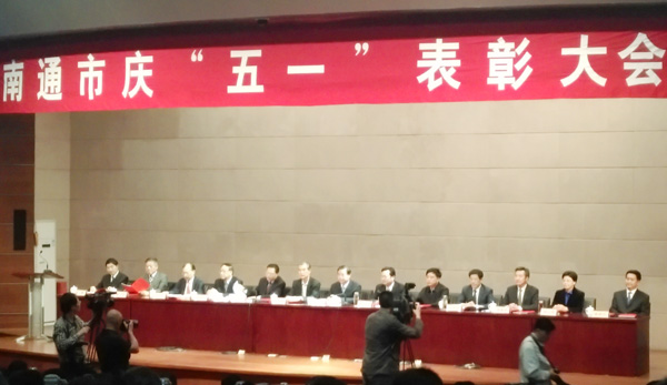 2015年4月29日下午14:00,南通市召开庆“五一”表彰大会,隆重表彰全国劳动模范和先进工作者等一批先进集体和先进个人。市委书记、市人大常委会主任丁大卫要求大力弘扬劳模精神,努力把南通“两个率先”的实践不断推向前进,共同谱写好中国梦的南通篇章。市委副书记、市长张国华主持会议。 丁大卫、张国华等市领导接见了赴京受表彰的全国劳动模范和先进工作者代表,向他们表示祝贺并合影留念。同时向广大劳动群众致以节日问候。