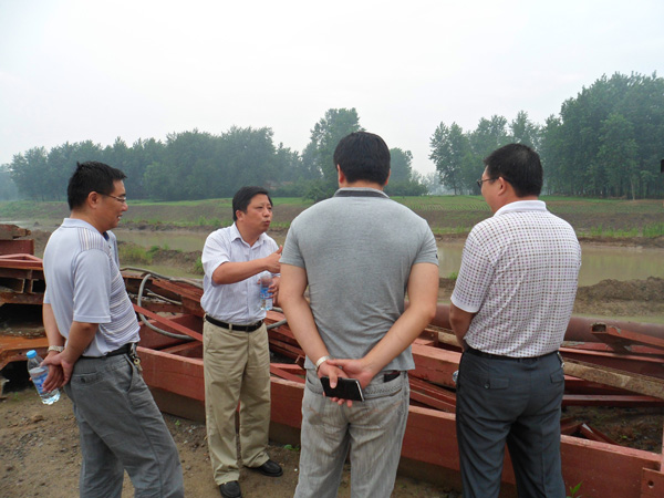2013年7月3日下午,淮安市涟水县杨亚专副县长带队至盐河四标工地现场进行了安全检查。杨县长指出:在抓质量、进度的同时不能忘记安全生产,尤其注意疏浚施工中疏浚船舶不得碍航,确保航道的通畅。要求项目部齐心协力,狠抓疏浚施工进度,确保在8月底前能基本完成剩余工程量。