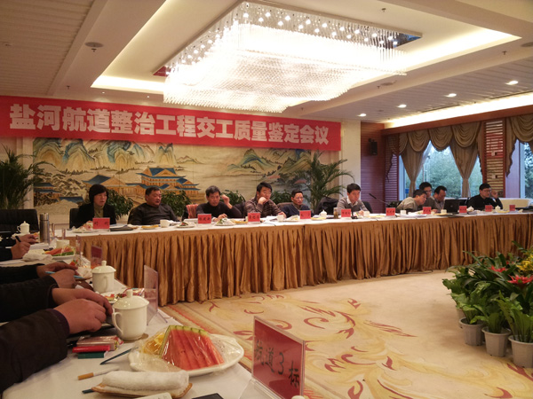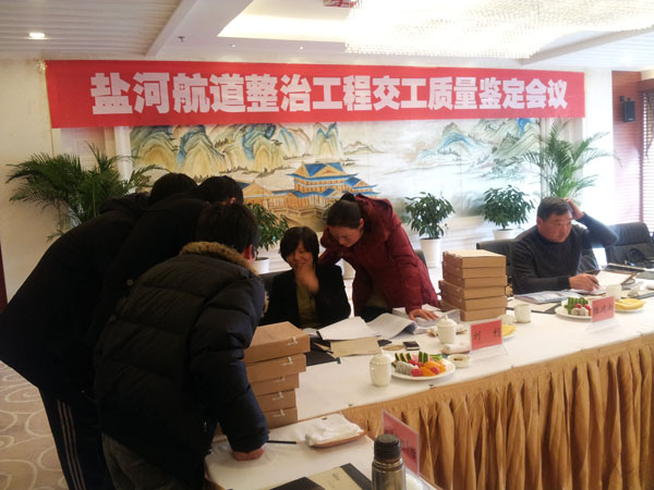 2012年12月22日,由江苏省交通运输厅工程质量监督局组织的盐河航道整治工程航道项目交工质量鉴定会议在淮安市白鹭湖山庄举行。参加会议的单位有:江苏省交通运输厅工程质量监督局、江苏省交通运输厅航道局、江苏省港航工程质量检测中心、淮安市盐河航道整治工程建设办公室、淮安市航道管理处、特邀专家及各标段项目部、监理部。