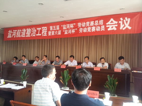 2012年8月31日下午15:00时,在淮安市航道管理处六楼会议室召开第五届“盐河杯”劳动竞赛总结暨第六届“盐河杯”劳动竞赛动员会议。会议由岳忠文副处长主持,主席台就座的有:淮安市交通运输局副局长夏文坚、淮安市航道管理处鲍立新处长、项彦彦书记、嵇阳高书记、张继龙、蒋涛、岳忠文、朱轶群、沈虹等领导,列席会议的还有各监理部总监、项目部经理、淮阴区及涟水县整治办负责人、市整治办全体人员。
